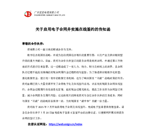關於啟用電子合同並實施在線簽約告知函