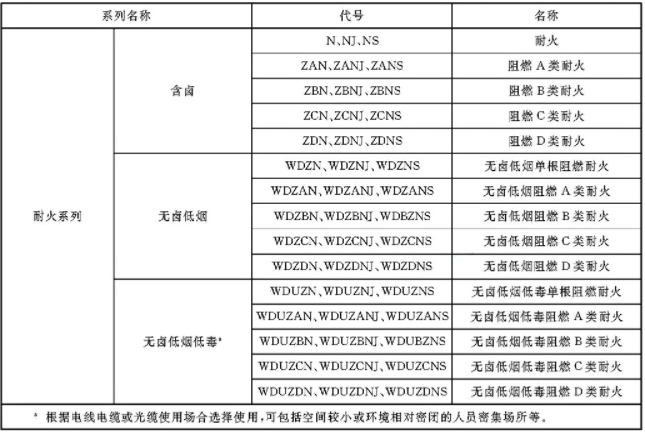 當有多種燃燒特性要求時,其代號按無鹵(含鹵省略)、低煙、低毒、阻燃和耐火的順序排列組合